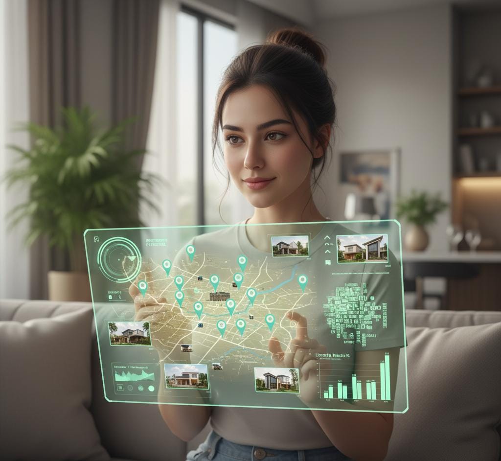 Tur Virtual Cerdas: Pandemi mempercepat adopsi tur virtual. Kini, AI dan Augmented Reality (AR) membawanya ke level berikutnya. Anda dapat "berjalan-jalan" di dalam calon rumah Anda, mengganti warna cat, atau bahkan menata furnitur Anda secara virtual—semua dari kenyamanan sofa Anda.